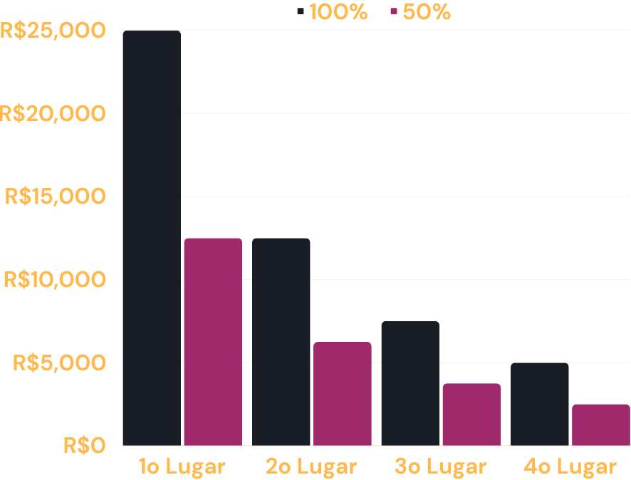 O quarto lugar terá 10% da premiação total disponível para distribuir entre os vencedores de sua comunidade.